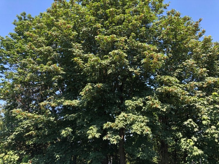 The maples are currently laden with helicopters; they’ll start flying when summer shifts into fall. Copious numbers will land in my yard, sending up a forest of seedlings that will fall victim to John Deere. I’ve also potted and gifted a few baby maples over the years. It’s nice, giving someone a tree of their own. It eases my conscience; I feel a bit guilty about the annual maple seedling cull.