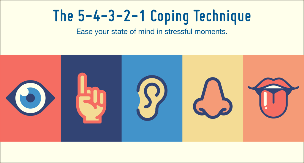 To calm the body, you must redirect the focus. Anxiety turns your attention inward: 54321 helps you refocus on the world.