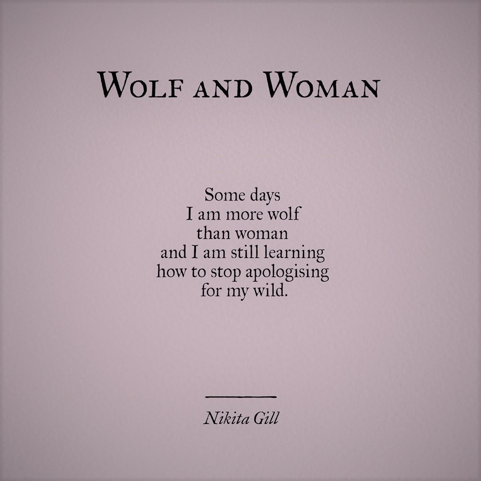 Some days I am more wolf than woman and I am still learning how to stop apologising for my wild. Nikita Gill