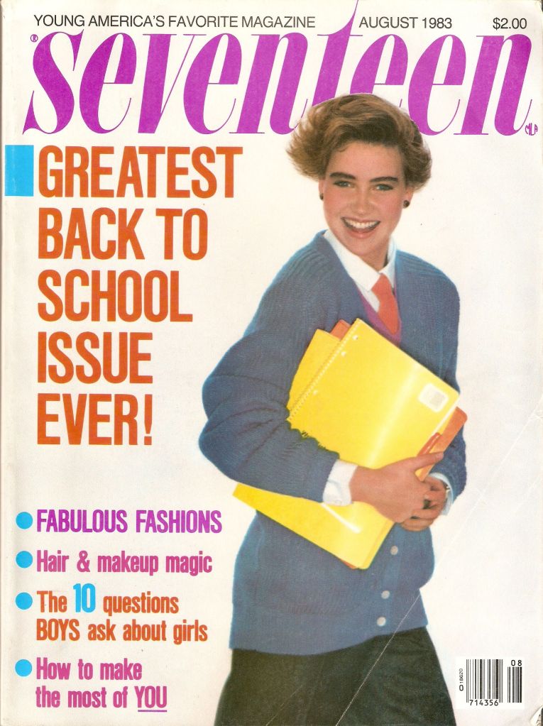 Seventeen was my magazine of choice. I read Teen for a few years as well but the former had better content. It had a new recipe to try every month, for example. I don’t remember them all, though the stuffed Cornish game hens with orange sauce stand out. There were advice columns, articles about puberty and being female, and lots about beauty and fashion. The stories about confidence, self-esteem, and mental health might’ve helped if I hadn’t already sold my soul to bulimia nervosa, though the disease appreciated pictures of very thin models.