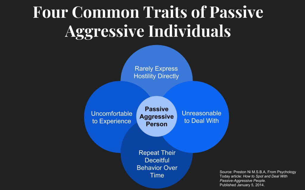 When it comes to passive-aggressive, open up. Be direct. Because passive-aggressive behaviour wounds and wounds don’t heal well if they remain hidden and covered up.