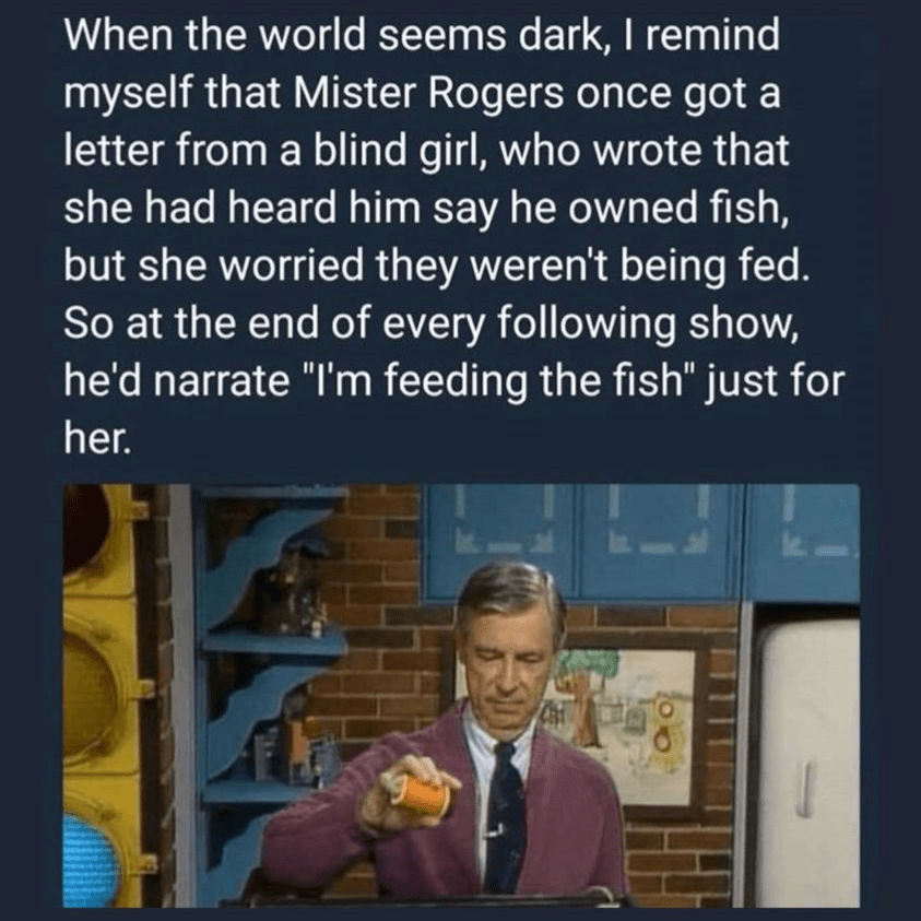 Aww, the Mr. Rogers story made me teary—how beautiful he was!
