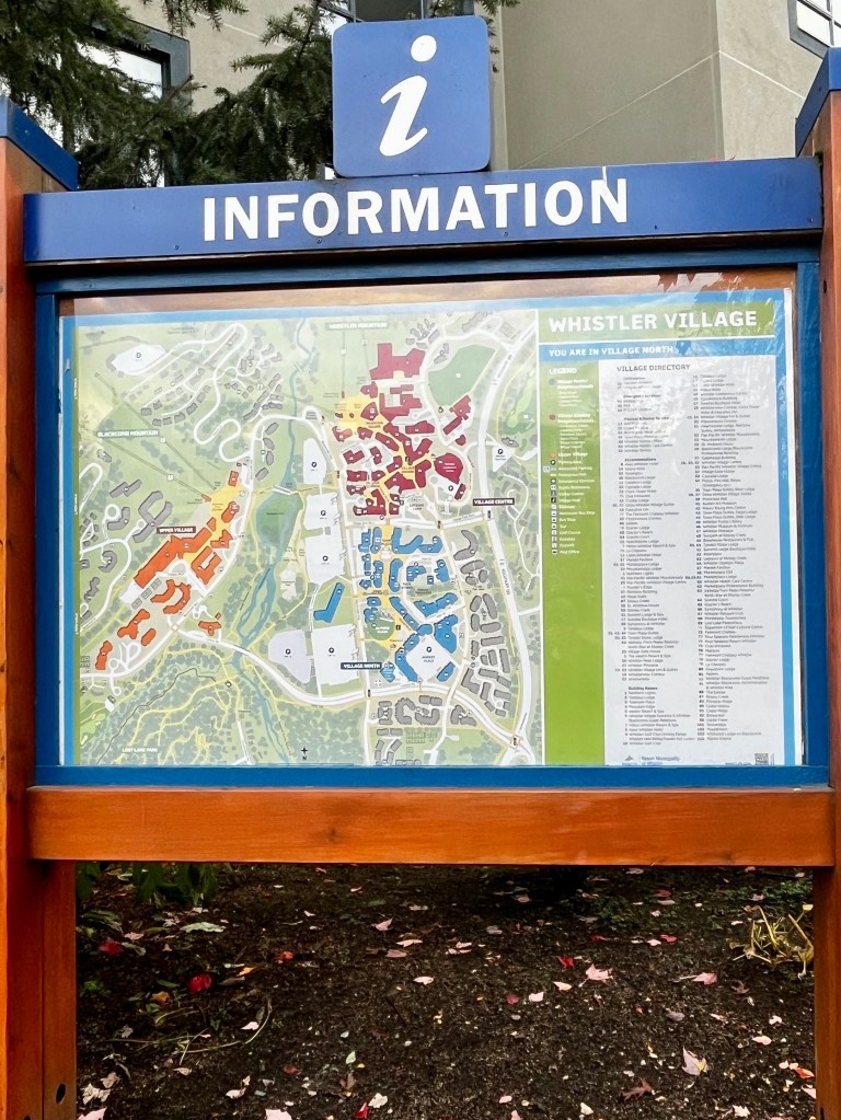 The nice thing about Whistler is it’s very hard to get lost in the Village areas. Signs and maps are everywhere. You can even download an app for the trails. It takes you on a guided walking tour. I declined as I was still enjoying the mostly silence, but it’s something to keep in mind for the next time. I will definitely come back.