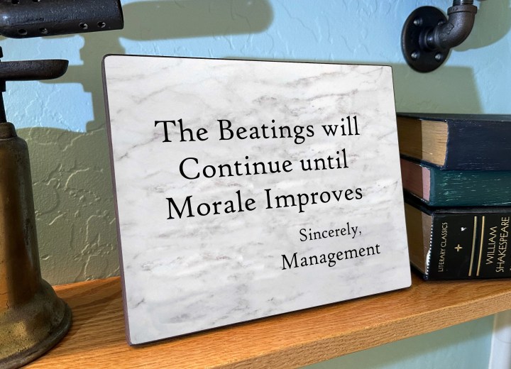 “Beating will continue until morale improves” works as well as you’d expect.