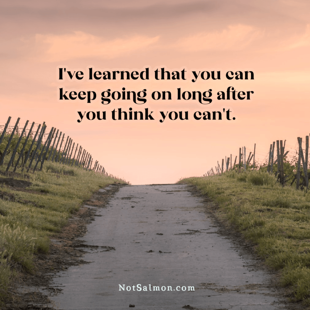This is a bit of “do as I say, not as I do” advice. I often give up, at least at first blush. It’s my default, backing down, and it requires a workaround. Step one was acknowledgment, and that was hard. I do hate admitting to imperfections.