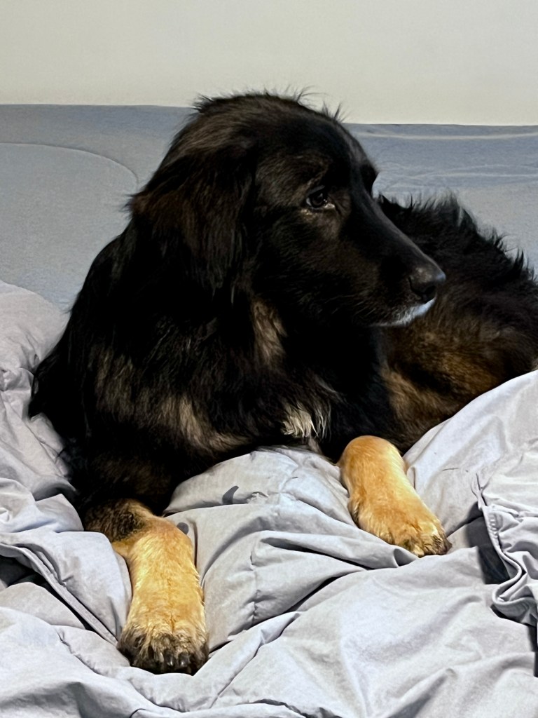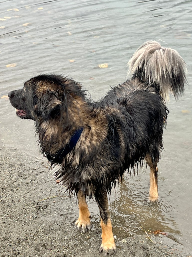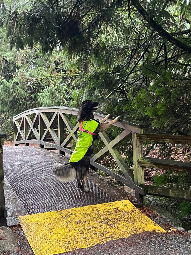 We did a basic training class, and she’s a smart cookie, but her time in the care of the SPCA, and perhaps her life before, made her quite skittish around other people. Other dogs she loves to death. Her need to remain by my side most of the time makes some training practices more challenging.