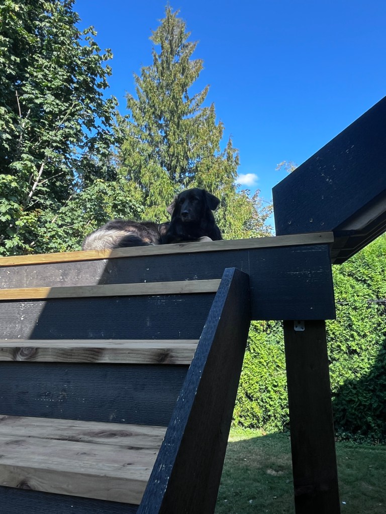 My baby has slickers, fashionable harnesses, and booties for icy weather. I’m not sure my kids had it so good. I didn’t build them a staircase off the deck, after all. Then again, they didn’t have to pee in the backyard. My convenience was a big factor.